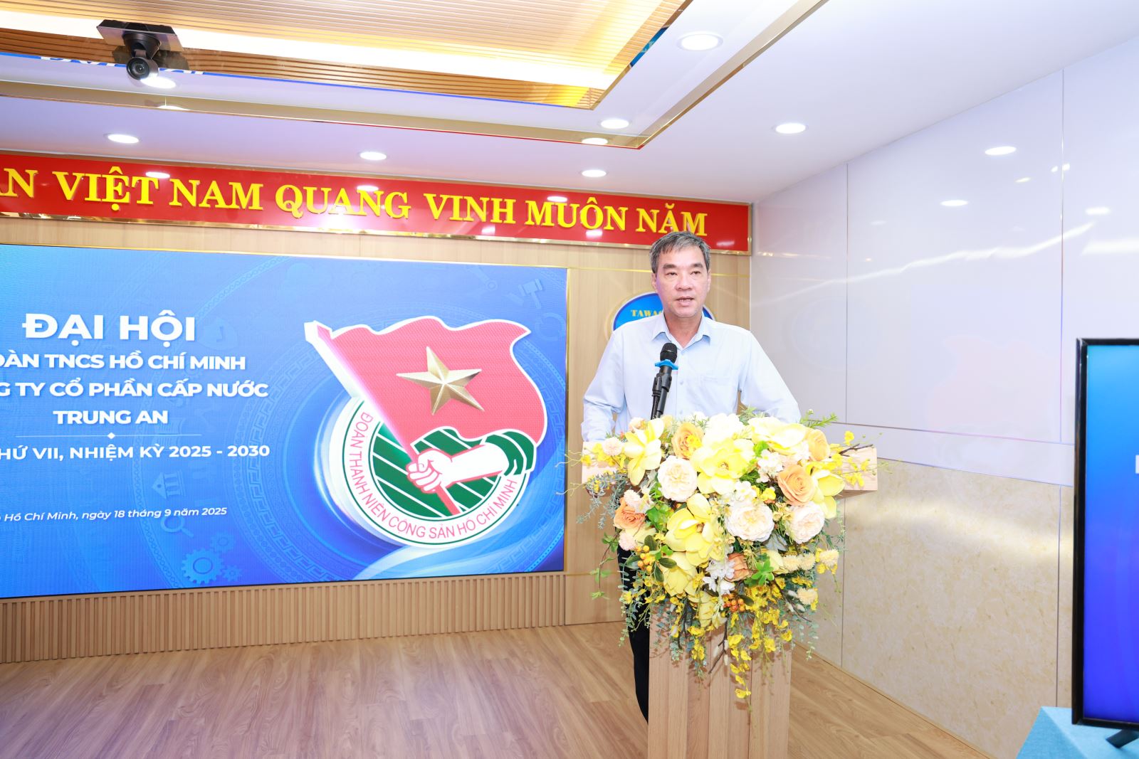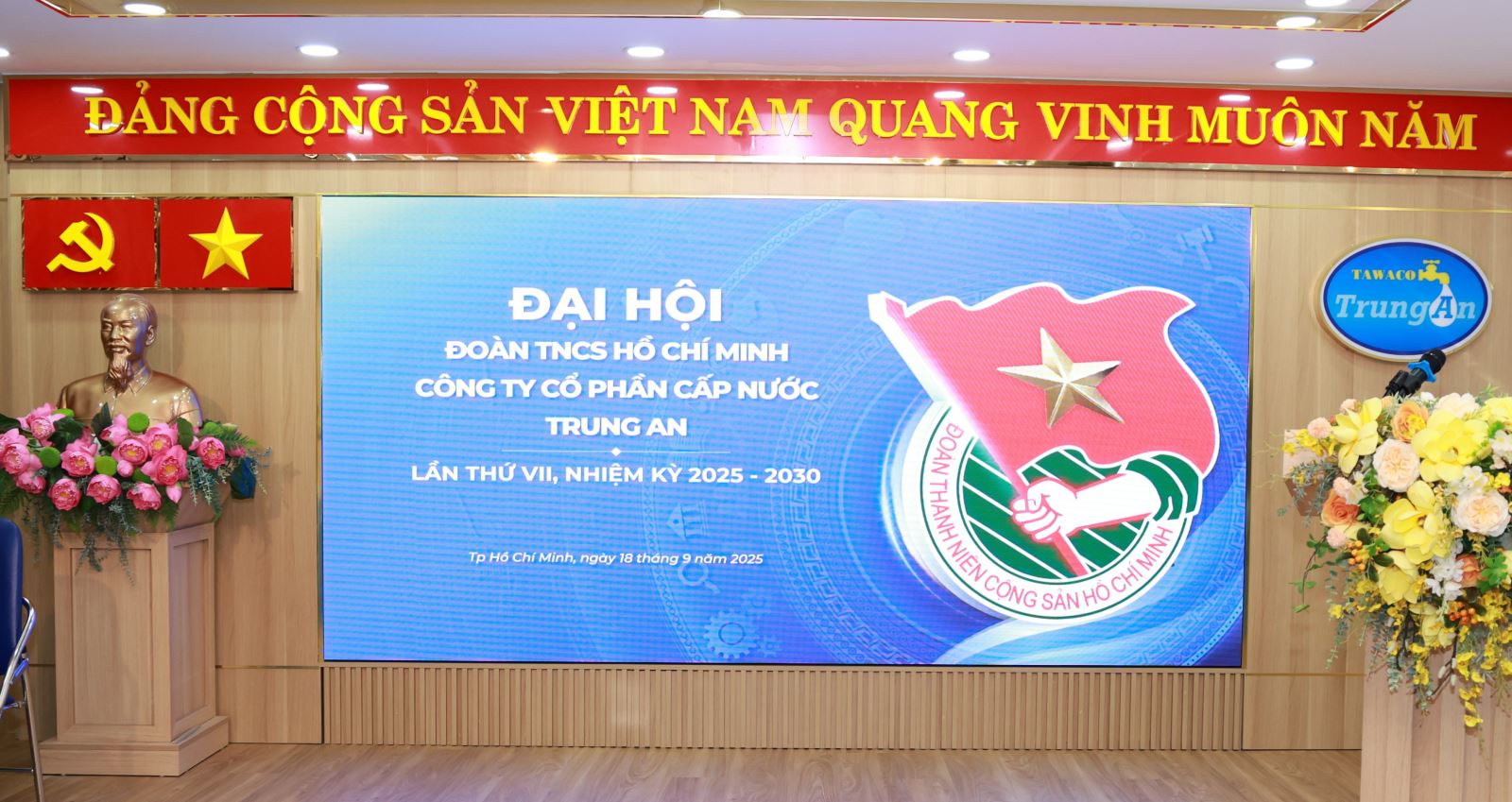 Chiều ngày 18/9/2025, tại Hội trường Công ty Cổ phần Cấp nước Trung An, Đại hội Đoàn cơ sở lần thứ VII, nhiệm kỳ 2025 – 2030 đã được tổ chức trọng thể trong không khí trang nghiêm, sôi nổi và đầy khí thế tuổi trẻ. Đây là sự kiện chính trị quan trọng, đánh dấu bước phát triển mới của tổ chức Đoàn trong Công ty, là dịp để tổng kết, đánh giá kết quả hoạt động nhiệm kỳ qua, đồng thời đề ra phương hướng, mục tiêu cho nhiệm kỳ mới.