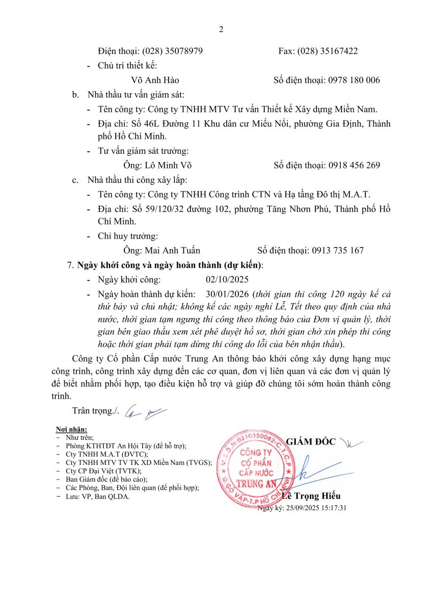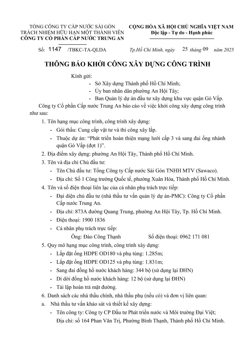 - Thông báo về việc gián đoạn cung cấp nước: ngày 09/9/2025 và ngày 10/9/2025 - Phường Trung Mỹ Tây, Phường Hạnh Thông, Phường An Nhơn, Phường Tân Thới HIệp
