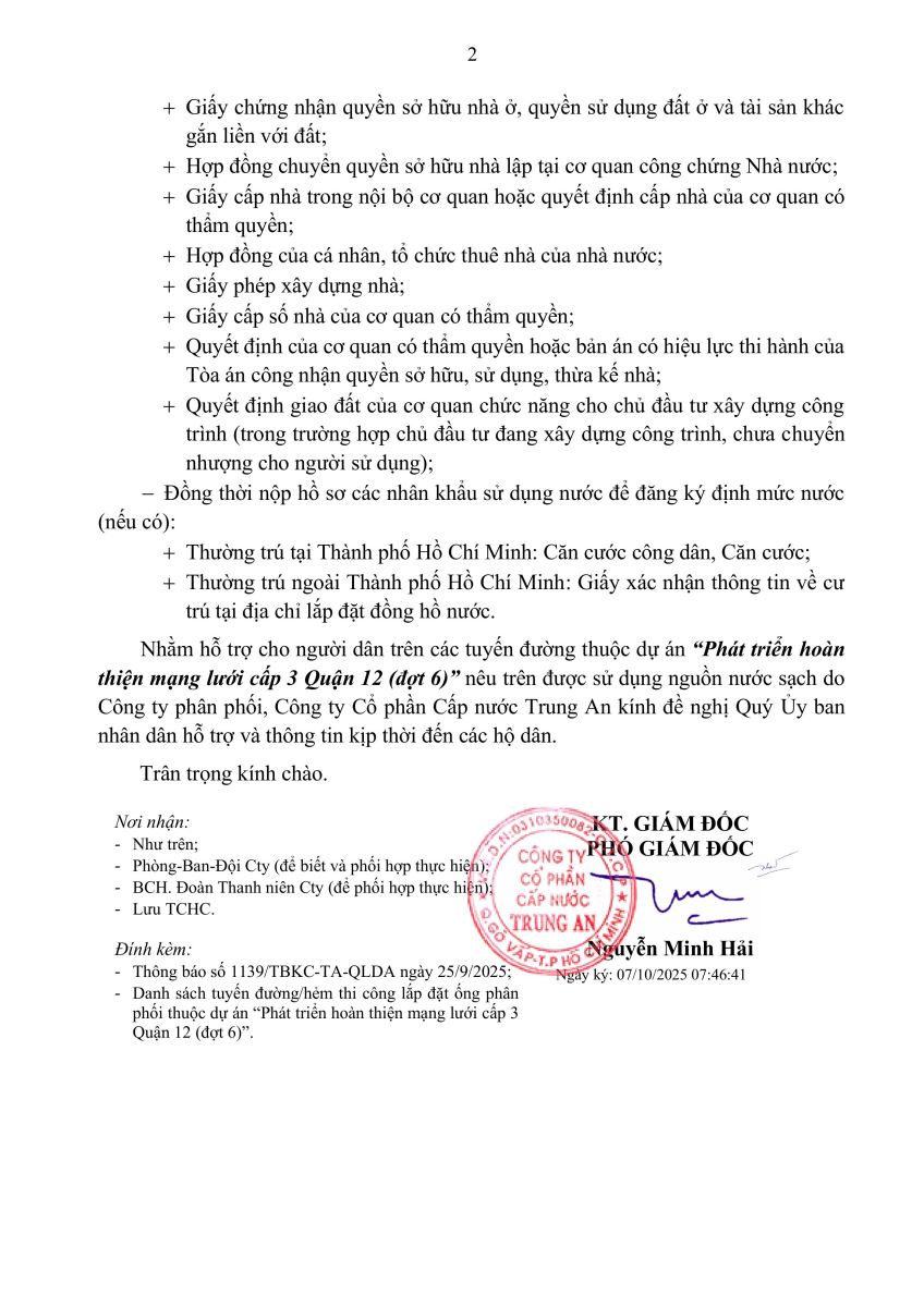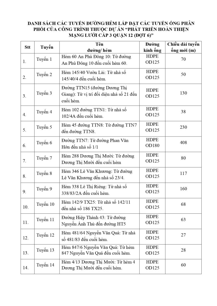 - Thông báo gửi các hộ dân có nhu cầu gắn đồng hồ nước trên địa bàn phường An Phú Đông, phường Thới An, phường Đông Hưng Thuận, phường Trung Mỹ Tây