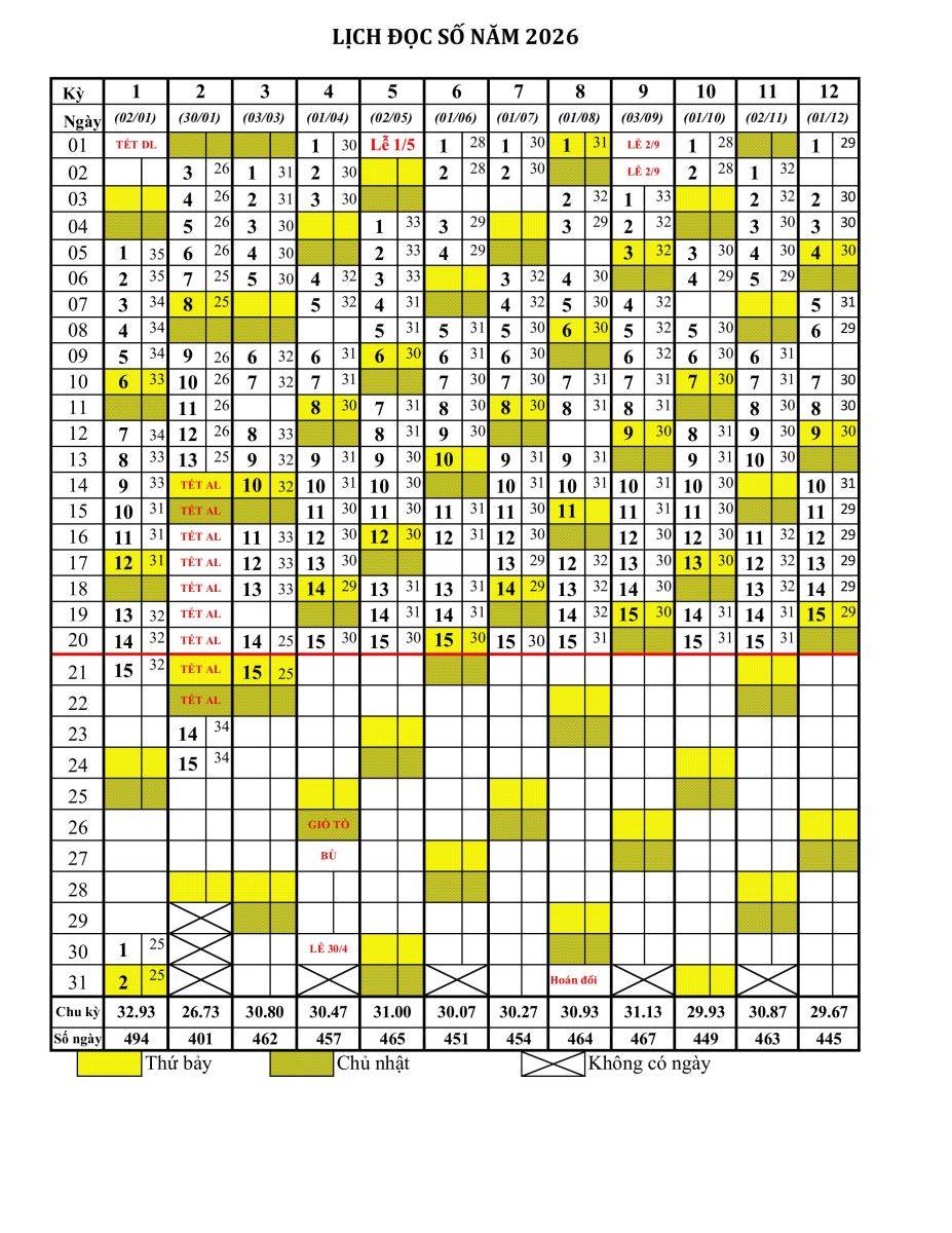 Lịch ghi chỉ số nước năm 2025 (điều chỉnh)