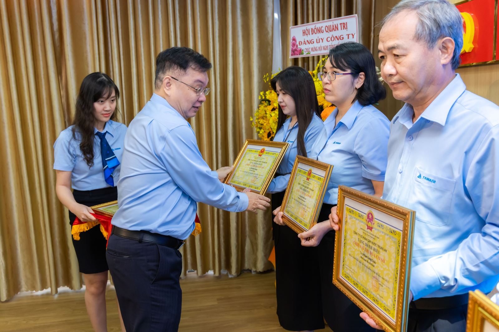 Nhằm ghi nhận những đóng góp, nỗ lực của các tập thể và cá nhân, hội nghị đã tiến hành khen thưởng cho: 19 Đảng viên hoàn thành xuất sắc nhiệm vụ; 01 tập thể và 33 cá nhân có thành tích tiêu biểu trong hoạt động sản xuất kinh doanh nhận giấy khen của Tổng Công ty; 33 cá nhân đạt danh hiệu Chiến sĩ thi đua cơ sở; 13 tập thể, 60 cá nhân đạt thành tích tốt trong phong trào thi đua sản xuất kinh doanh nhận giấy khen của Công ty; và các tập thể, cá nhân được khen thưởng trong hoạt động Công đoàn và Đoàn Thanh niên.