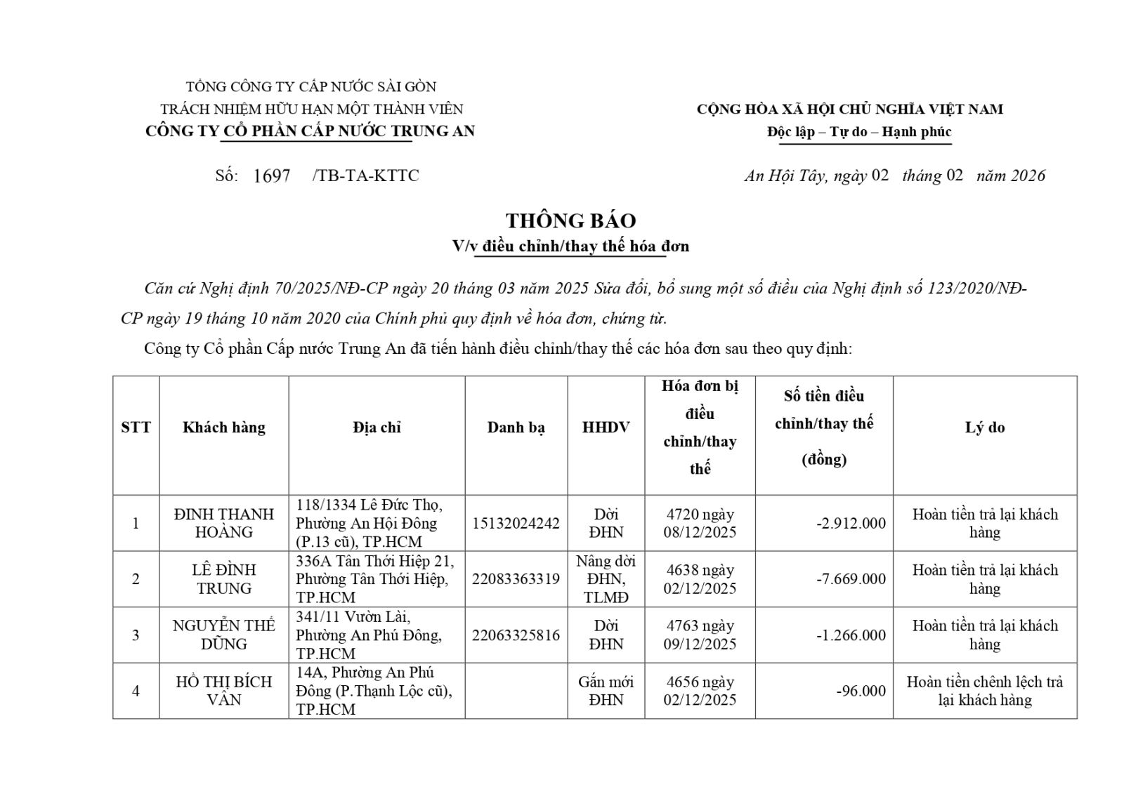 - Thông báo điều chỉnh/thay thế hóa đơn