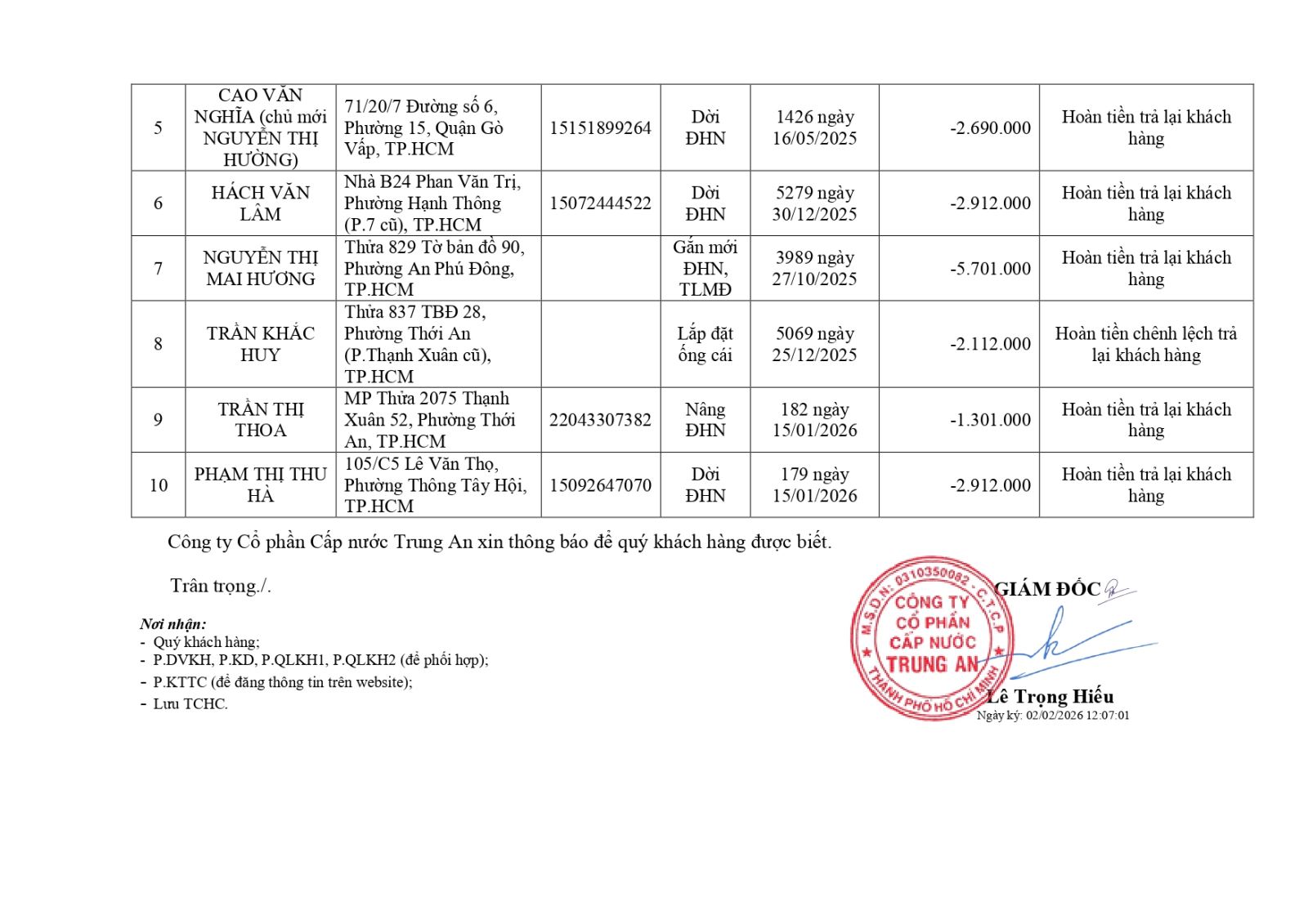 - Thông báo gửi các hộ dân có nhu cầu gắn đồng hồ nước trên địa bàn phường An Phú Đông, phường Thới An, phường Đông Hưng Thuận, phường Trung Mỹ Tây
