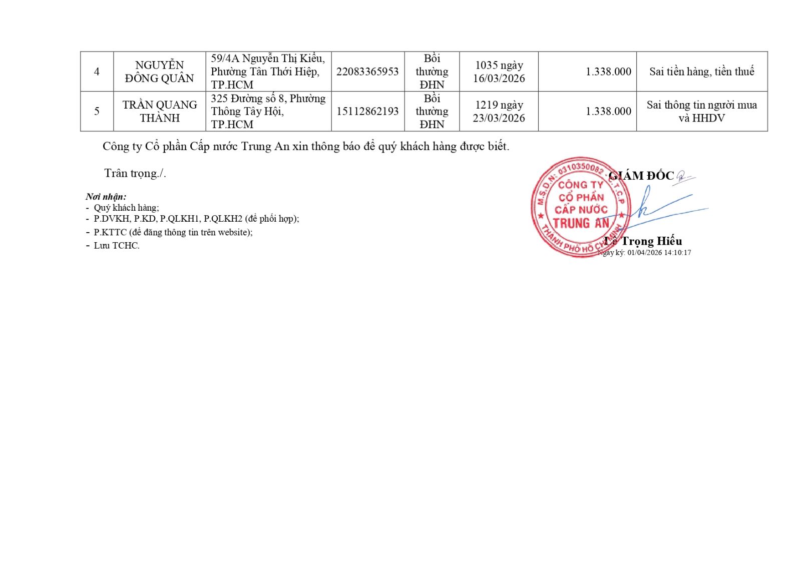 - Thông báo về việc nộp hồ sơ lắp đặt đồng hồ nước cho người dân dọc tuyến đường ven kênh Tham Lương-Bến Cát